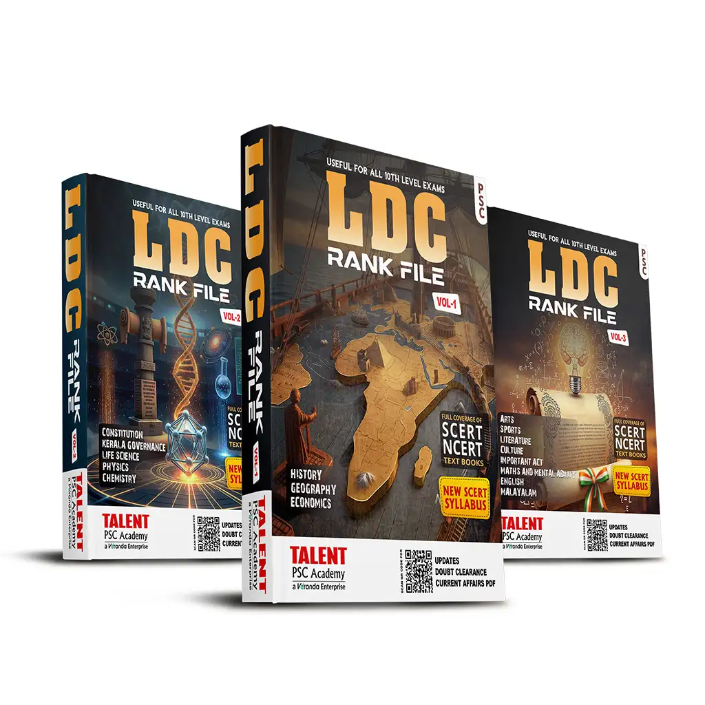 Since 2012, Talent PSC Academy been Kerala's trusted PSC coaching institution with 10+ branches and expert-crafted books from Talent Publications being the one-stop solution for success in govt. exams. Join us and shape your career!