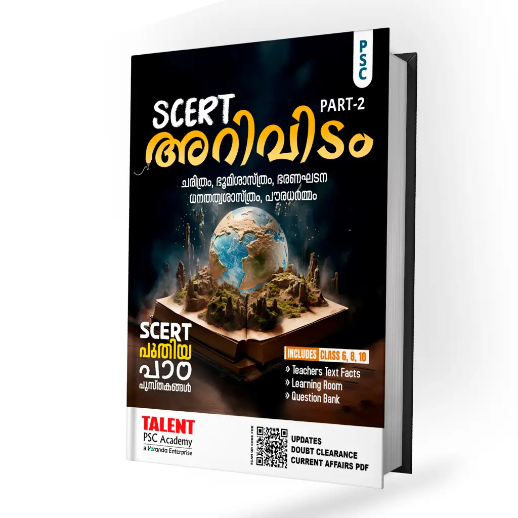 Talent Academy Arividam SCERT Social Science Part 2 is a complete Kerala PSC exam preparation book designed to strengthen your understanding of key Social Science concepts. Prepared according to the latest SCERT syllabus, this book features detailed chapter-wise content from Classes 6, 8, and 10 for conceptual clarity and exam readiness.